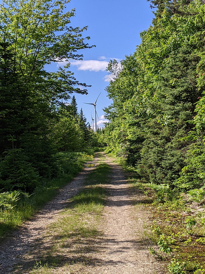 It was also less wide and only knee-deep compared to my crossing from the day before. One across, it was up another crazy climb and a lovely walk along the summits with views of the river below here and there and of the summits all around. This was one of my favorite parts of the entire trail, but it only lasted a short while before it was down the most horrendously steep trail that I’ve ever seen to another river. I had to cross this river too, but it was smaller and also had a wire spanning it, although no ropes. It was up again and down again, before walking along the bank of a stream to the Ruisseau Creux refuge. I was only halfway through the day, but completely spent from all the ascent and descent and my back must have gotten out of whack from my fall the day prior because it was very uncomfortable, although not in the usual way. All I could do was lie on my back for about 20 minutes and groan when I got to the refuge. It was a lovely spot though and eventually I felt able to get up and check out it out. The refuge was very light and airy compared to the previous ones and in a glade next to the stream, a place I’d like to go back to some day. I decided to soak my legs and back in the stream, but it was ice cold and I only managed to bear the icy water for a few seconds. I stretched, ate and relaxed for a good two hours before reluctantly packing up my things and heading off, of course starting with a climb! It wasn’t that steep though and on an atv track, which flattened out and was very cruisy for about 5 kms. The track spits you out on a dirt road in a wind turbine park, which I followed down into the small village of Ste-Marguerite.