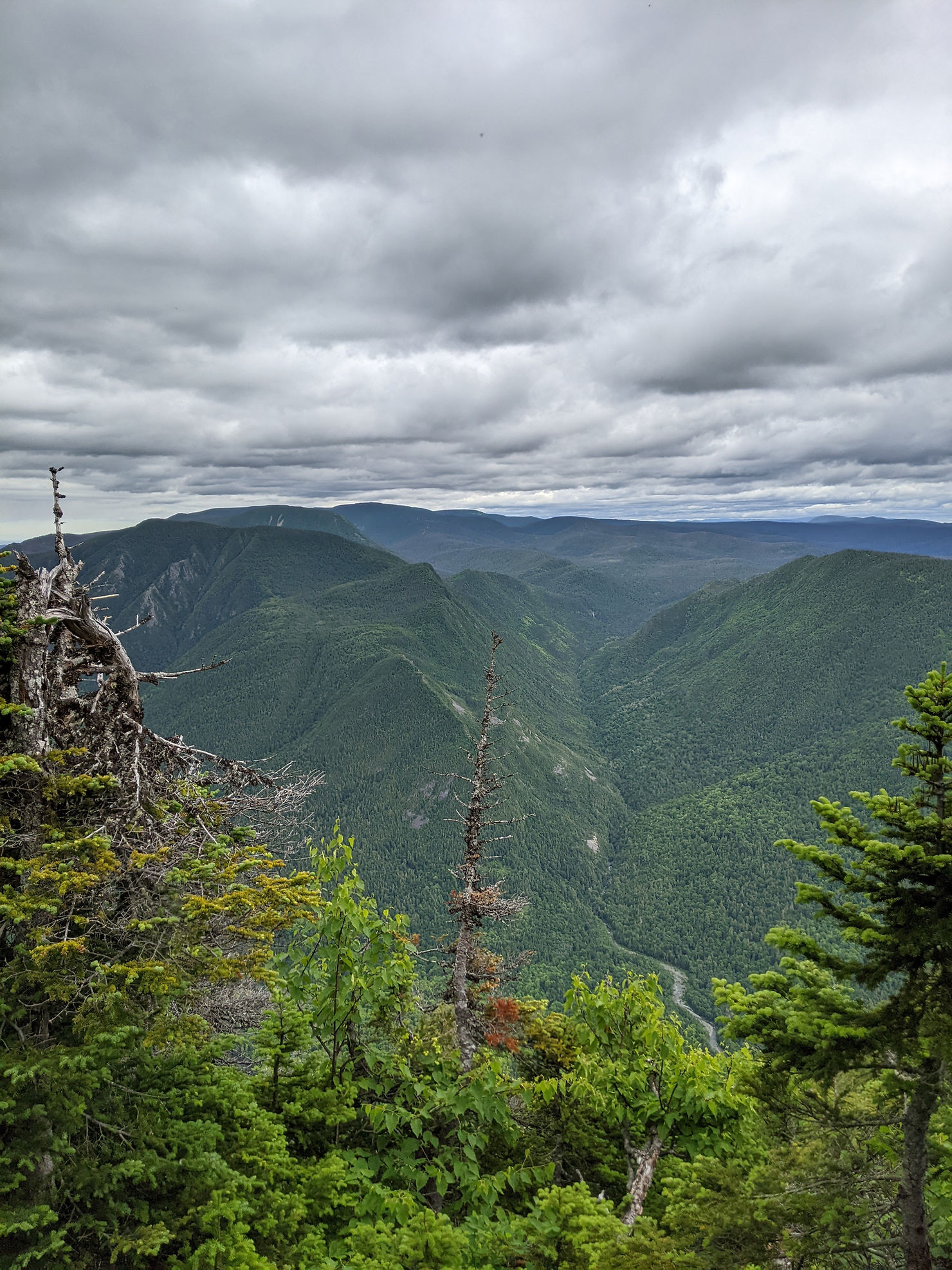 In the direction I was going, it wasn’t the climb up, but the decent which is infamous. The clouds had lifted by the time I got there, so I did have some views and could see the waterfall that I would hike by tomorrow, as well as tomorrow’s night’s destination, Mont Logan.