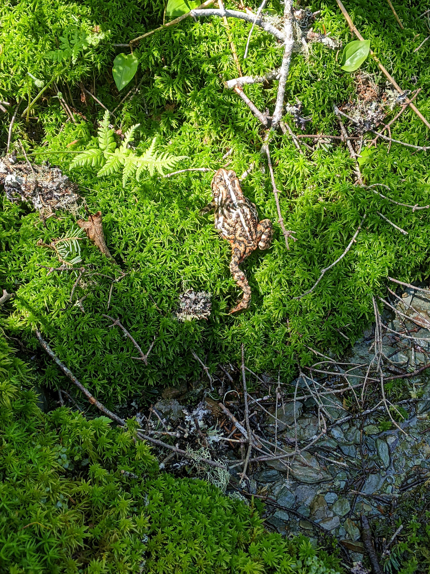 I was still somehow feeling tired and glad to get into camp early at just after 3 pm. The site had 4 tent platforms and is near a lake. There was another camper, whose name escapes me, who was doing a section of the SIA and had just started from a nearby hut where a shuttle had dropped him off. He said he wanted to hike the entire trail, but his partner wasn’t on-board for him leaving her behind with their kiddos for the entire summer. We chatted a bit and also found a spot to do a bear hang, which wasn’t ideal but worked. I didn’t want to hang my food bag in the toilet since when I did this two years ago, the mice had gotten to it. So the hang was more for mice protection than real concern about bears and IMO it was ok that it wasn’t perfect. I went down to the lake and did some trail laundry since it was early, windy and sunny enough that I thought my clothes would have some chance of drying. I wasn’t quite feeling up to a dip though, it was chilly next to the windy lake.