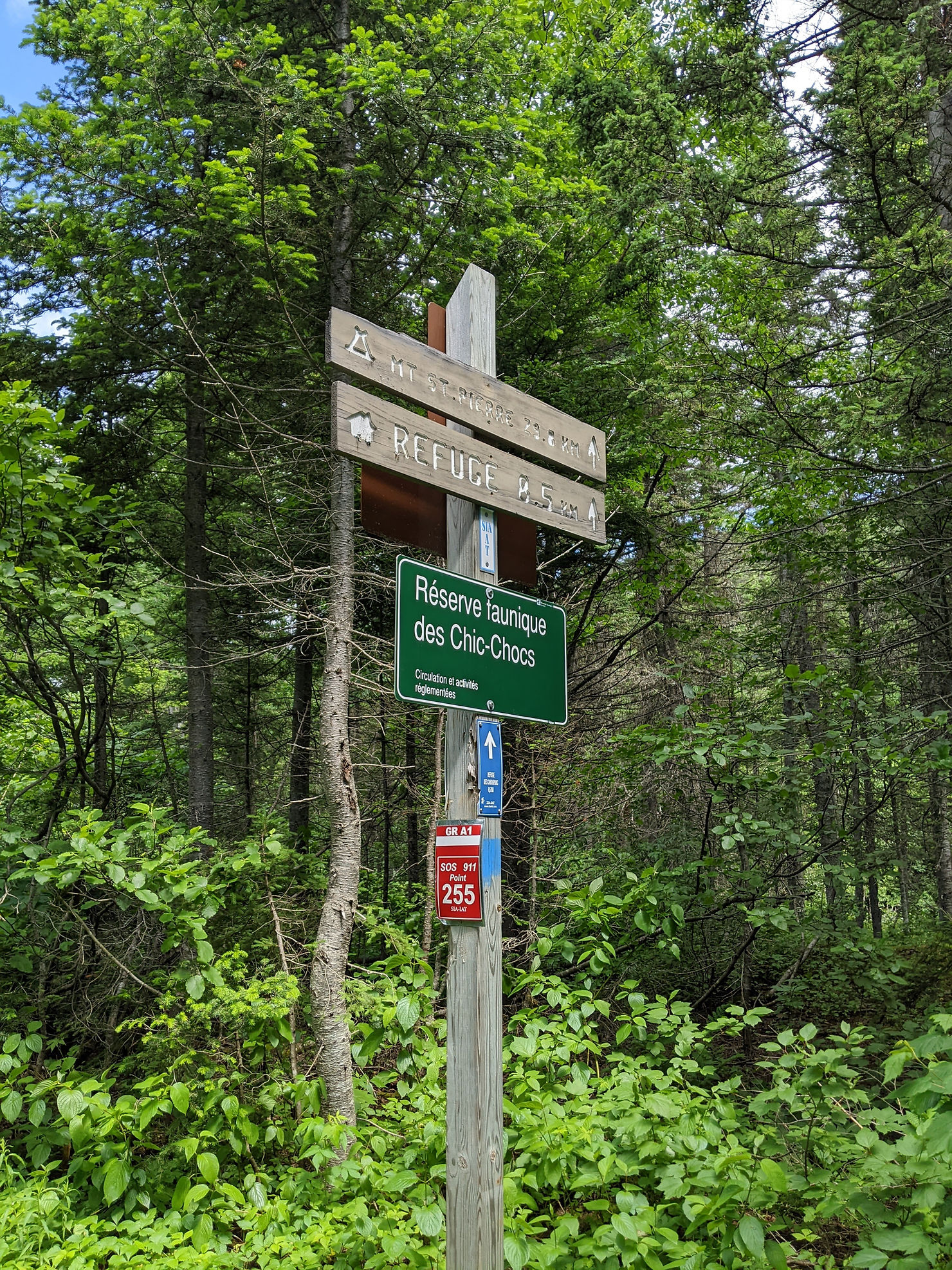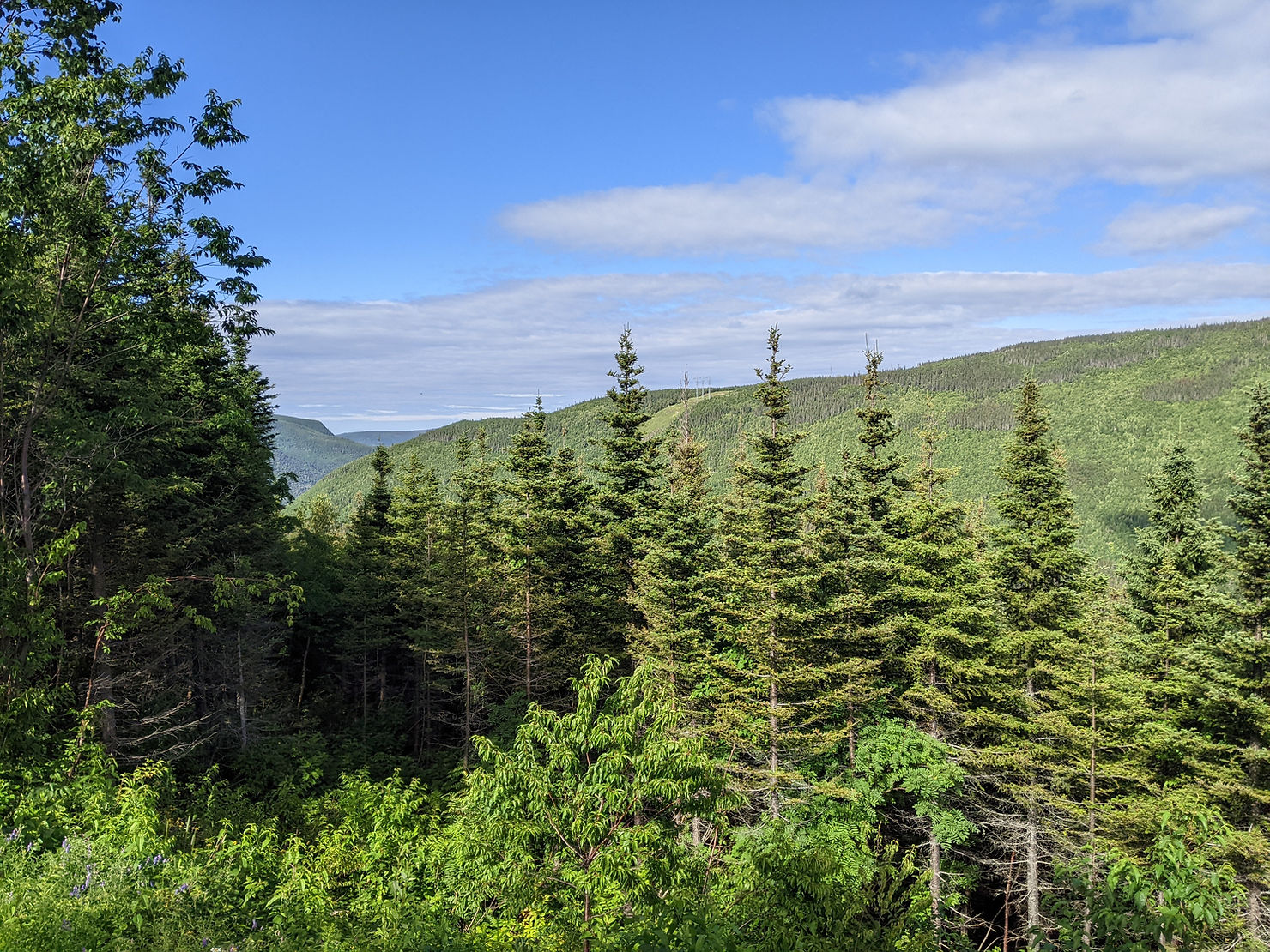 I bought some moleskin at the campground store and took some extra care bandaging my feet. I only set off around 11:30 and was relieved that the trail was quite easy and eventually turned into an atv track as I left the Parc de la Gaspesie.