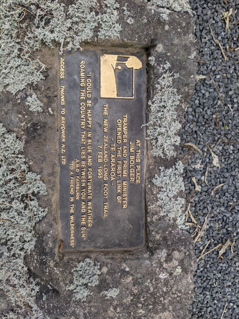 Then it was through some suburbs on sidewalks before taking to the road shoulder for the last few kms to the forestry road through the Waitangi forest. The forest is logged and the road was quite exposed so quite hot. I met a couple of Kiwi trampers that I hadn’t seen before, the only other hikers that I saw today. There’s a plaque towards the end of the forestry road that commemorates the opening of the the TA.