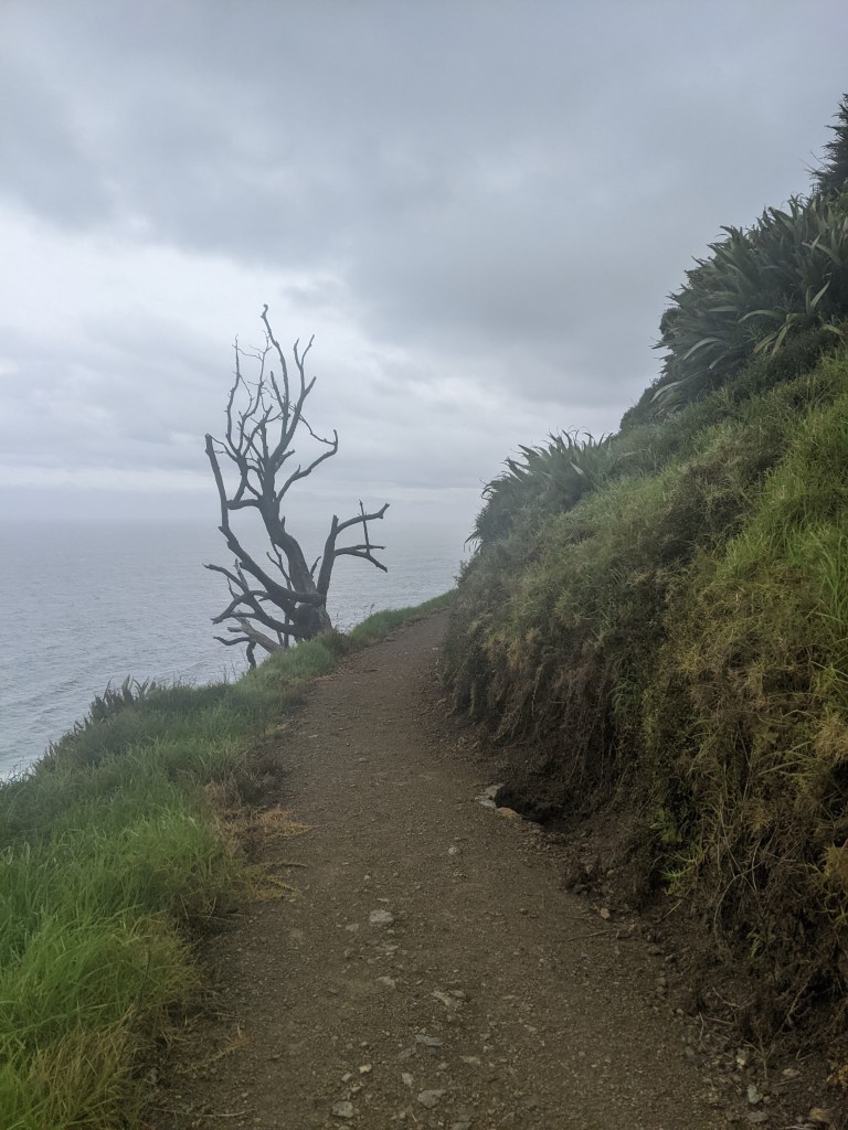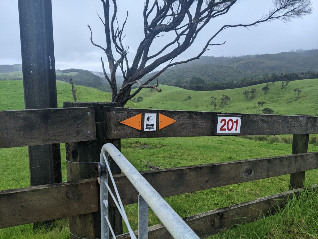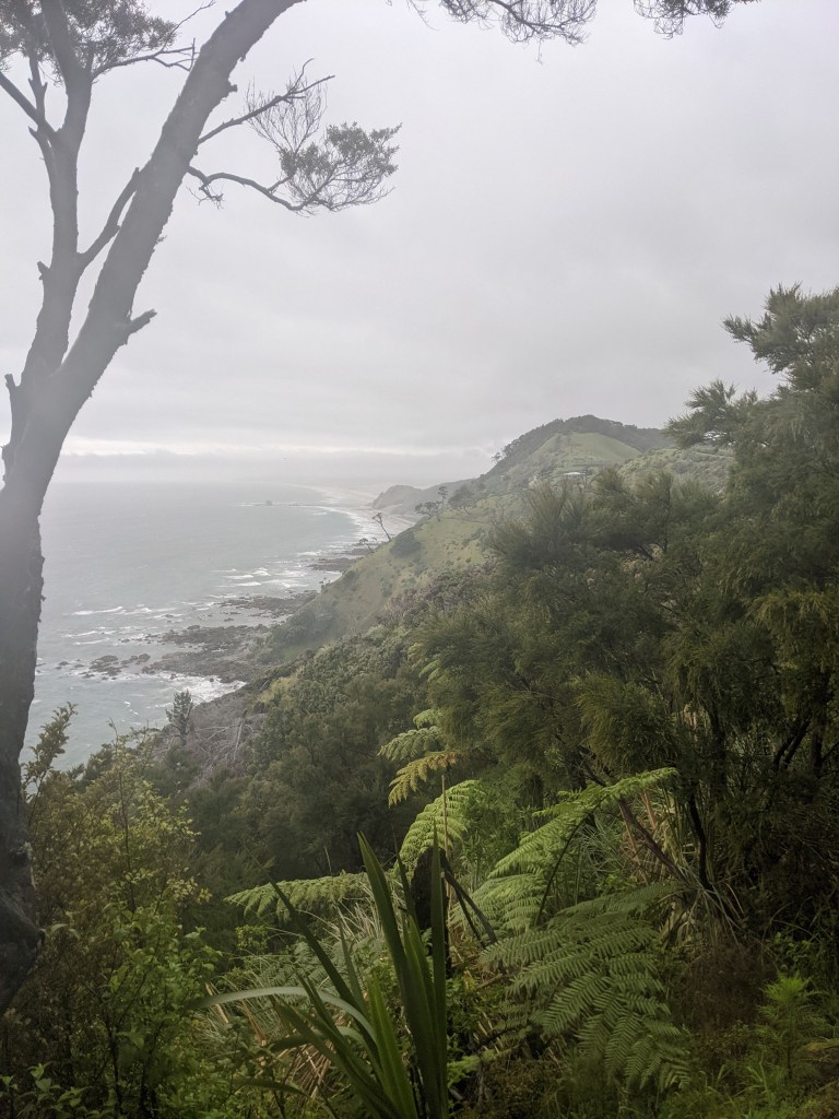 After lunch, it was off the road and across some pastures without any animal sightings. There was a very steep climb up a hill and then a short forest section before coming out on the Mangawhai coastal walkway along the cliffs. I had been concerned about the wind for this section, but luckily the trail was mostly quite sheltered.