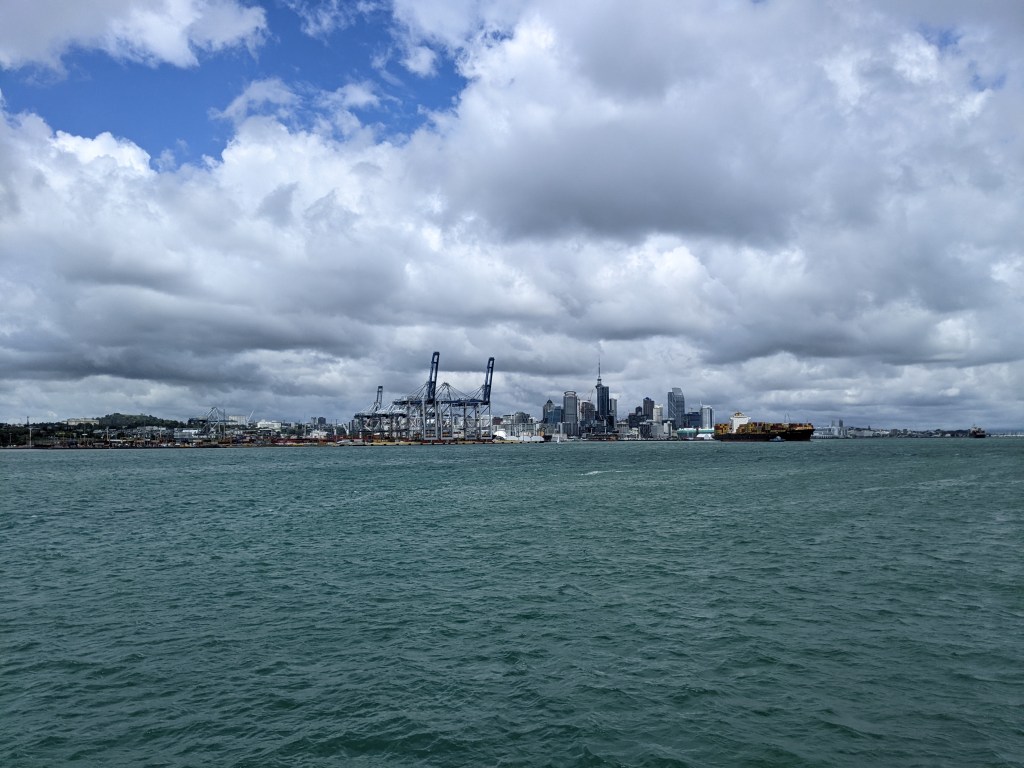 I slept well on the pull out bed, but we got up late given that we went to bed late. After packing up, we headed off to a cafe for breakfast, I had french toast with grilled bananas and a berry coulis with a flat white. We then joined up to the trail again and Followed it along the coast to the ferry and had a short ride across the harbour to Auckland’s central business district.