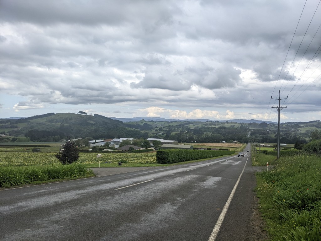 After a short section along the Puhinui stream and then through Totara park, with everyone out walking their dog, it was onto the road for the rest of the day. I stopped off in Takinini to go the the Bin Inn to get some dinner and breakfast items. I also found a few fresh things in a nearby fruit and veg shop. I met Maureen on the road, a woman from Switzerland, also heading to Bombay and we walked into Drury together.