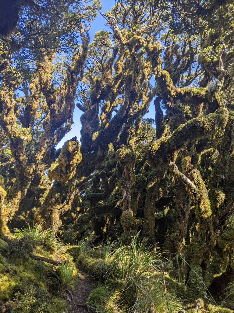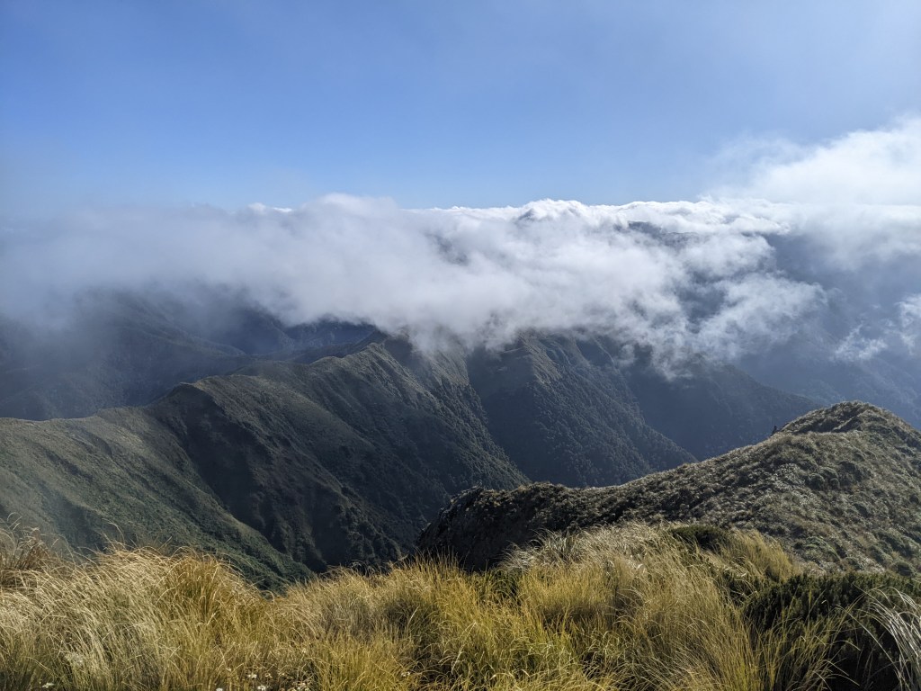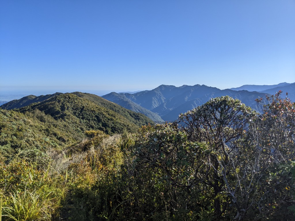 I hung out there for a bit and then continued on, crossing quite a few TAers all day going SOBO. One was Barbara, who I had spent the stormy night with in Mangawhai. I also met Caroline and Cecile, which wasn’t completely unexpected but still a nice surprise. The trail descended into for goblin forest after Mt Crawford and mostly stayed there for a while although it did emerge for some steep climbs and descents once in a while. The clouds had completely lifted my now and the views were breathtaking in every direction.