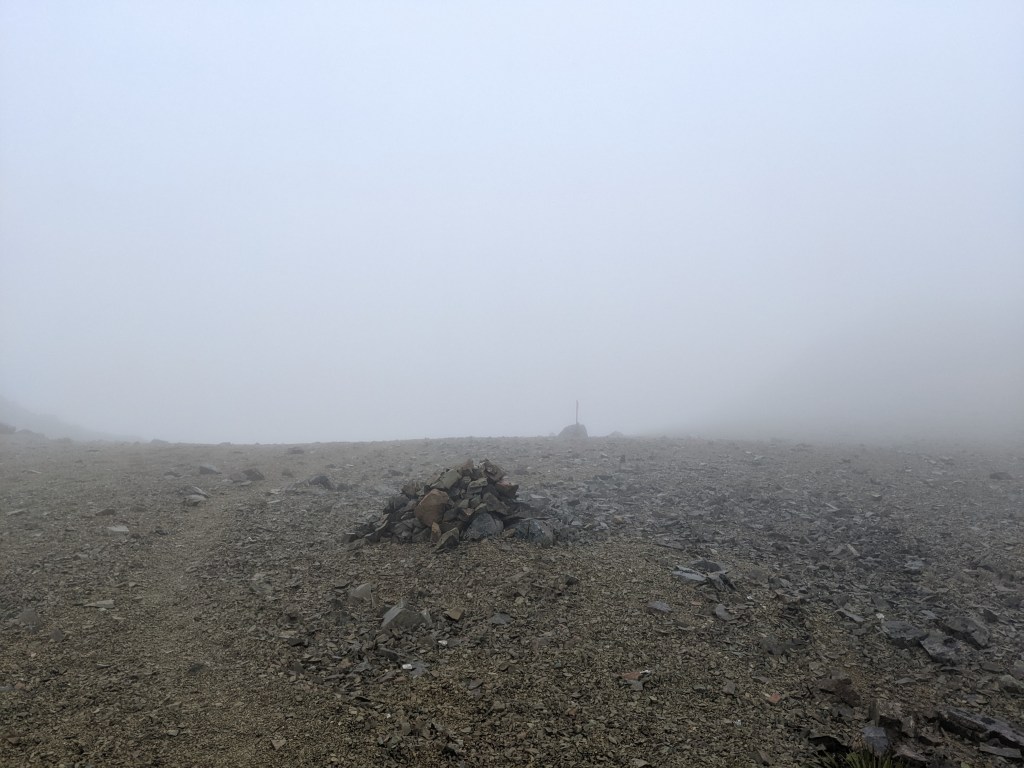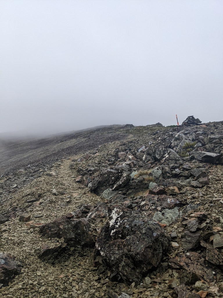 There was an insanely steep descent after the summit and then it was up and up again to the summit of Mt Rintoul. It started raining a bit harder when I got to the summit and of course there were no views so I didn’t stop.