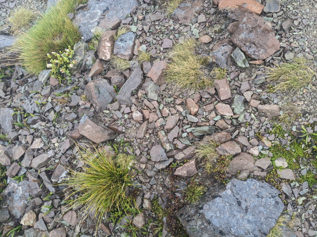 I headed down a really fun scree slope, which was sort of like walking downhill in a lot of a snow, you slip down a bit while digging your heels in, but then your footing eventually holds. Eventually, it was back into the forest and more descent to Mt Rintoul hut, where I stopped for a break. I tried to start a fire in the stove to get the hut warm for the others and dry out a bit, but with no success. Emmet arrived and did manage to get a fire going. After a good long break, Hanna and I set off while Emmet was still undecided about staying or continuing. The track climbed through forest and then above the treeline to Mt Purple Top, which was aptly named.