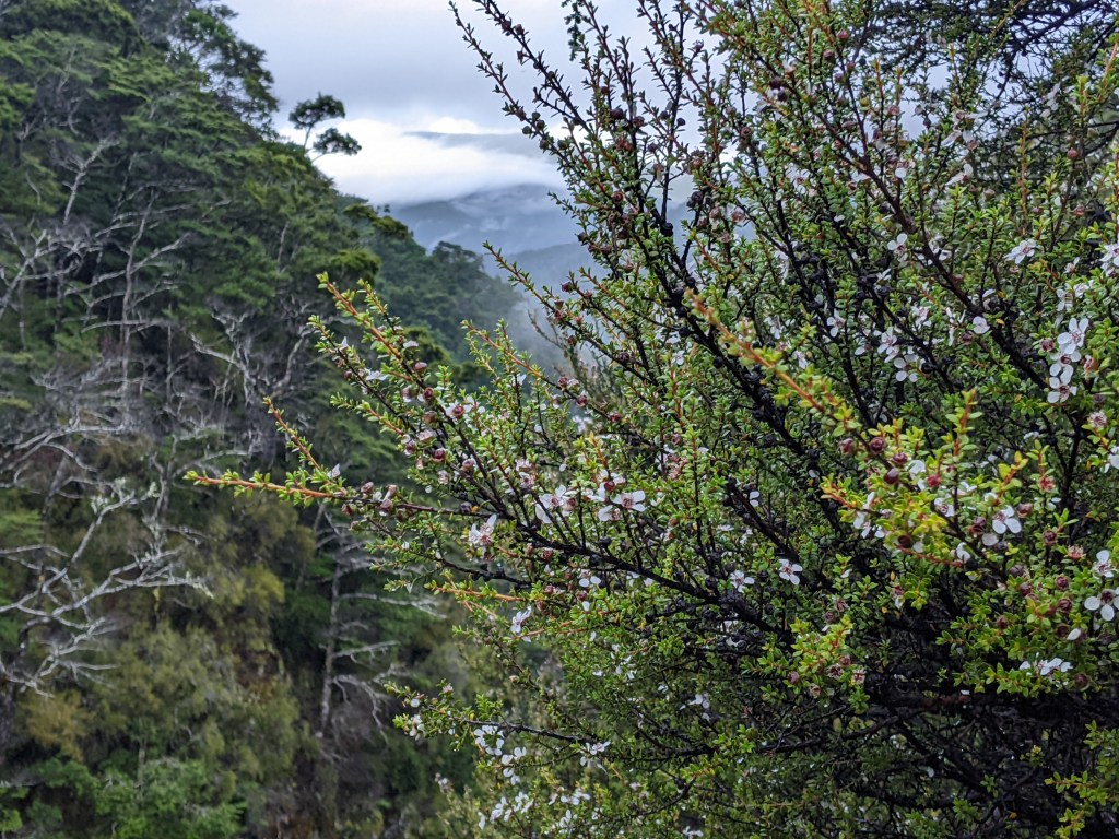 There were also a lot of trees that seem to be affected with this black fungus, they sort of look burned. I had some tears of relief when I made it to Top Wairoa hut after 4 hours, especially since I slipped and fell on one knee, got stung by a wasp and then spent about a half hour looking for the trail after crossing a river. The hut’s busy, there are 8 of us in 6 bunk hut, but it’s a nice dynamic. It did stop raining in the evening so we could see a bit of the Wairoa river valley.