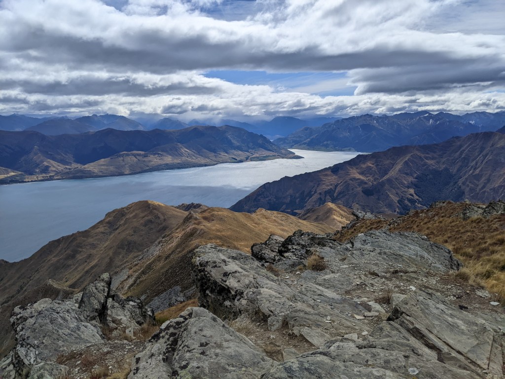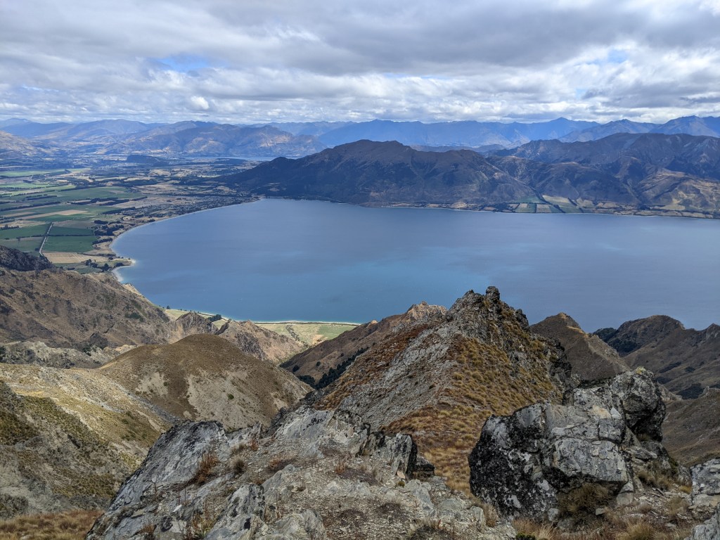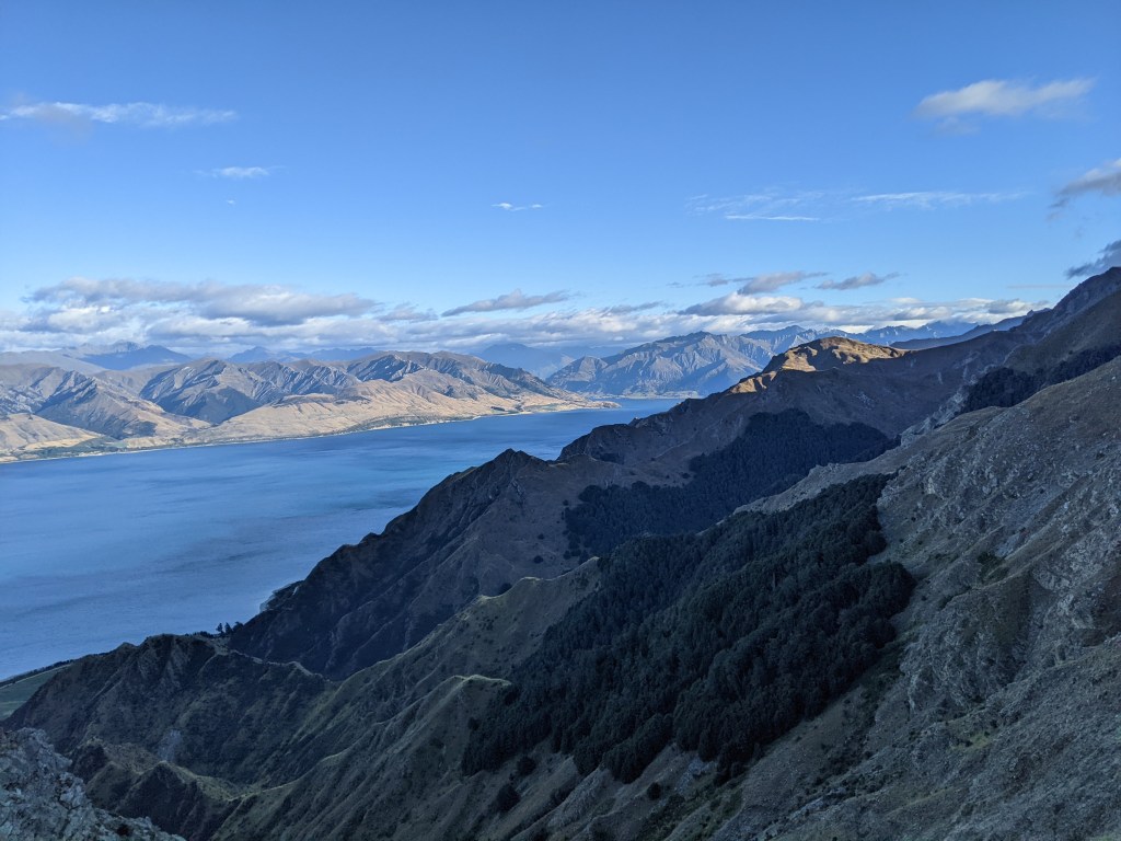 We eventually got to the summit of Breast Hill that overlooks Lake Hawea and it’s town down below. There was a brisk wind, but we stayed at the summit enjoying the view as long as we could and then started down once we got cold.