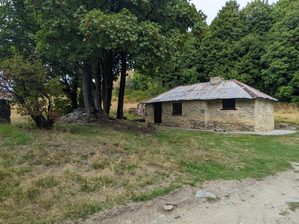 At the river, we had the choice of the taking the river or a track alongside the river. The river seemed to be the recommended route unless it’s flooded but since it wasn’t, we chose the river. The track literally was the river although we were sometimes able to walk along the bank. I should probably be say hobble, not walk, as after a few minutes in the icy water, neither of us could feel our feet any longer. We finally reached Macetown, an abandoned mining town from the gold rush era and were able to leave the river for a while and warm up our feet. There isn’t much left of Macetown and the one intact building had a gate inside the door preventing one from going in.