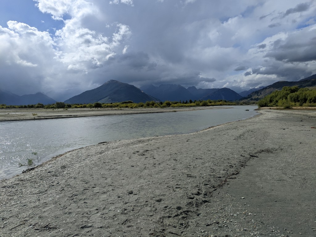 After having a breakfast bap and flat white, it was off to the bus to Frankton, where we did our resupply. The New World didn’t have a good bulk section so I ended up with some fresh veggies, taco seasoning, a packet of dehydrated beef from a sports store and some rice from the bulk food store to make up some dinner of sorts. I also got some trail mix and cereal at the bulk food store. Lunches will be smoked salmon wraps with cream cheese, so not very zero waste friendly unfortunately. We continued into Queenstown from Frankton. I stopped for an ice cream at Patagonia chocolates and it was so big that it ended up being my lunch. Queenstown was congested with traffic from construction and there were so many tourists everywhere. It didn’t really appeal that much. In any case, we had already planned to head straight to Glenorchy so we got our thumbs out and quickly were on our way there. The road between Queenstown and Glenorchy follows the shoreline of Lake Wakatipu and is very scenic, as is Glenorchy itself with lots of mountains in the backdrop. I walked down to the lake and spent the afternoon doing chores and then reading. Caroline and Elsa are sharing the dorm room with me and Cecile so it’s 4/4 being french speakers.