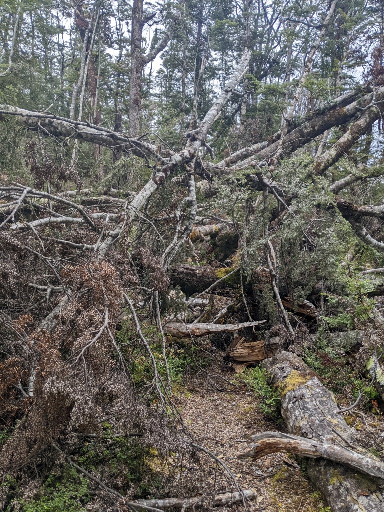 We stopped for lunch at a meadow and then continued on to the Greenstone hut, which we didn’t stop at. From Greenstone hut, we took the Mavora lakes walkway, leaving behind the super track that was the Greenstone track. This track wasn’t so bad at first, but quickly deteriorated into the track with the most windfall yet. It was fun at first to figure out going around or over/under them, but after too many to count, it was just plain exhausting.