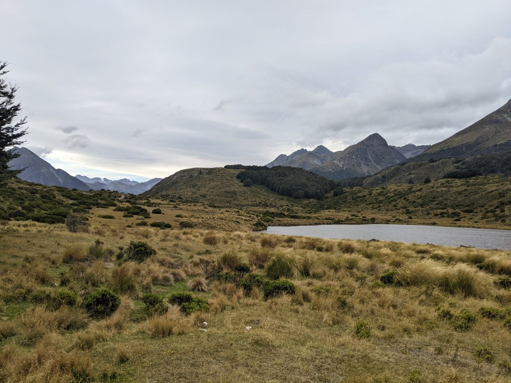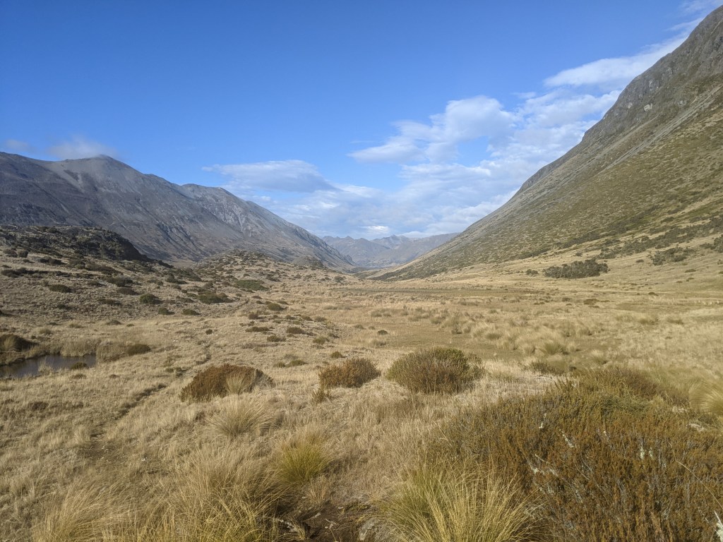 The track finally emerged from the forest and then went through some open tussocky and boggy fields. It was easier going than the forest, but still not the easiest terrain. At least the views were great.