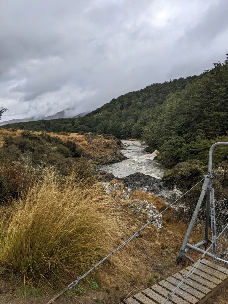 The kms went by quickly enough and we made it to Kiwi Burn hut by late afternoon in a light rain. It’s a cute 12 bunk hut that we have all to ourselves again. Despite Cécile’s Garmin saying there was 0% chance of rain tonight, it did start pouring rain at about 7pm. We’re hoping that it won’t rain too much tonight and that we’ll still be able to cross the Mararoa river tomorrow morning, although there is a bridge about 3km back that we can use if needed.
