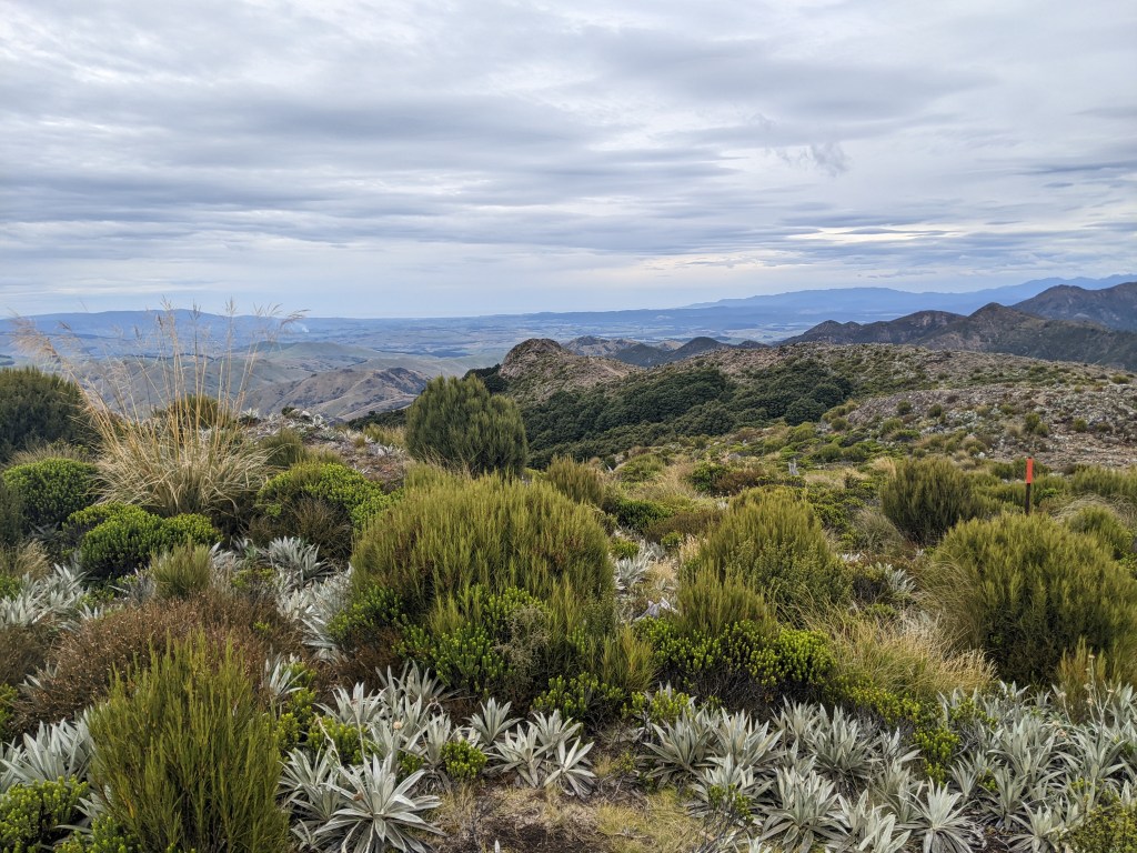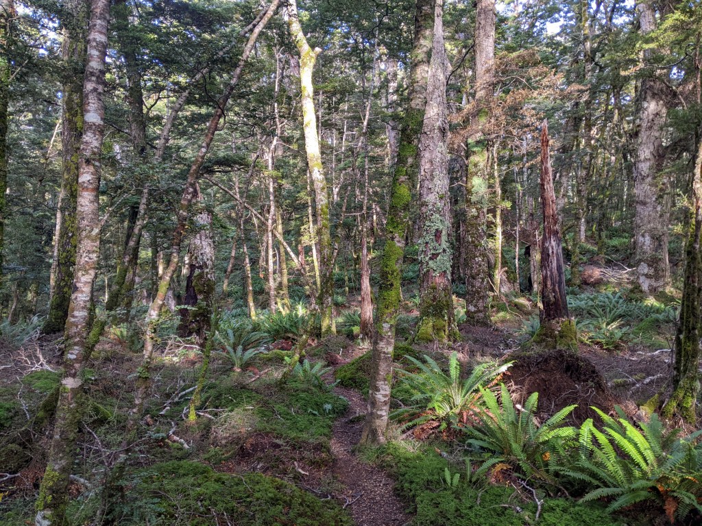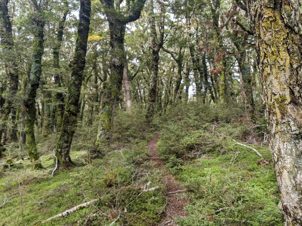 The track undulated upwards and then undulated downwards, with the occasional steep climb or descent and a few must patches. The track wasn’t too difficult, but wasn’t easy enough to be able to look around much while we walked. We got to Lower Wairaki hut in time for lunch and met a couple of Nobos there, who were delayed in their start date, but who seemed optimistic about getting most of the South Island done before any wintery weather. Leaving the hut, we had a nice climb through the forest to Telford tops. It was somewhat emotional to climb out of the forest and to be able to see all the way to the ocean and even to Bluff.