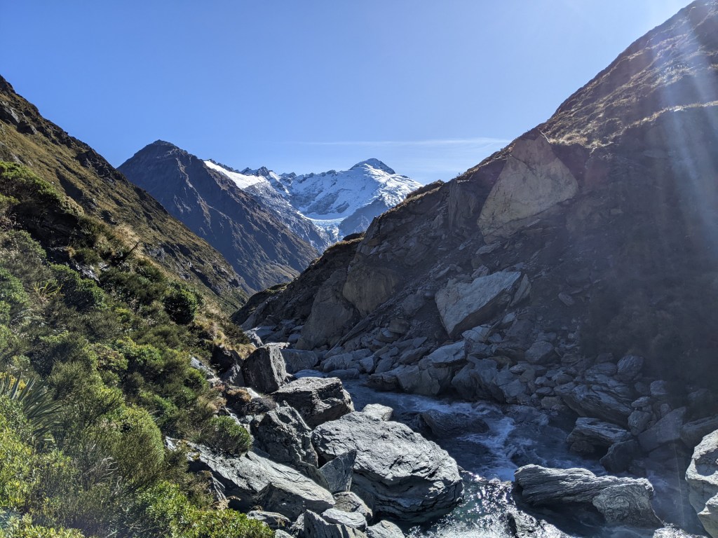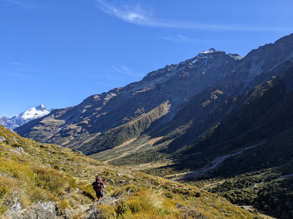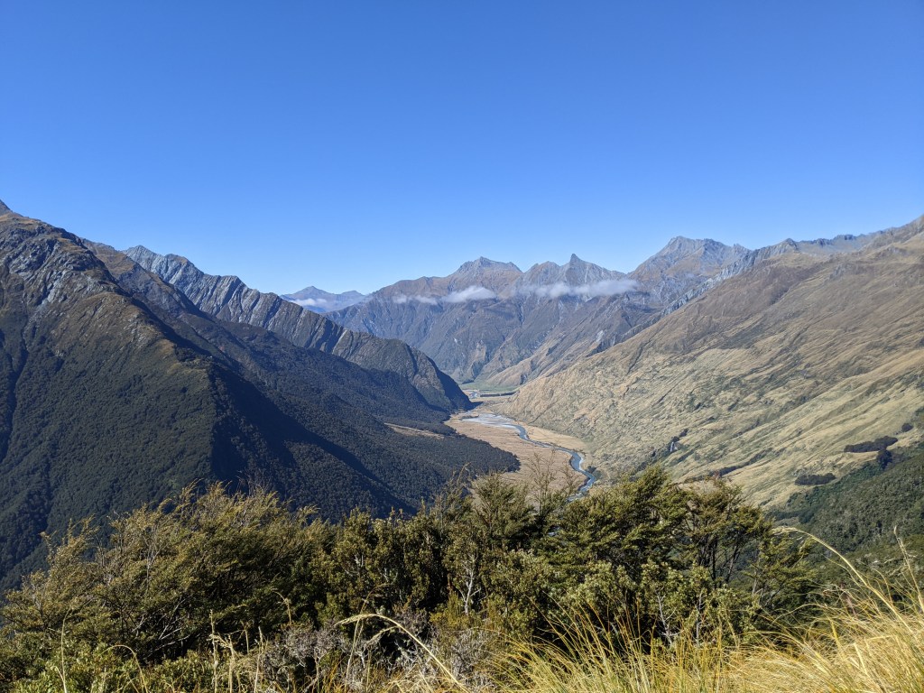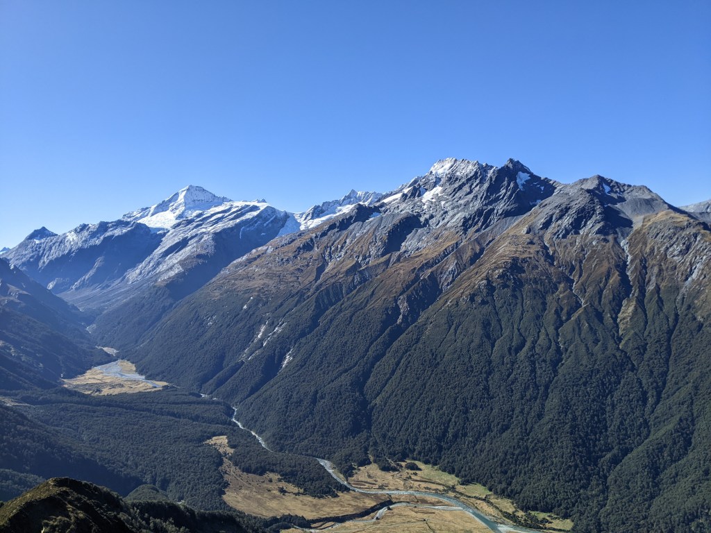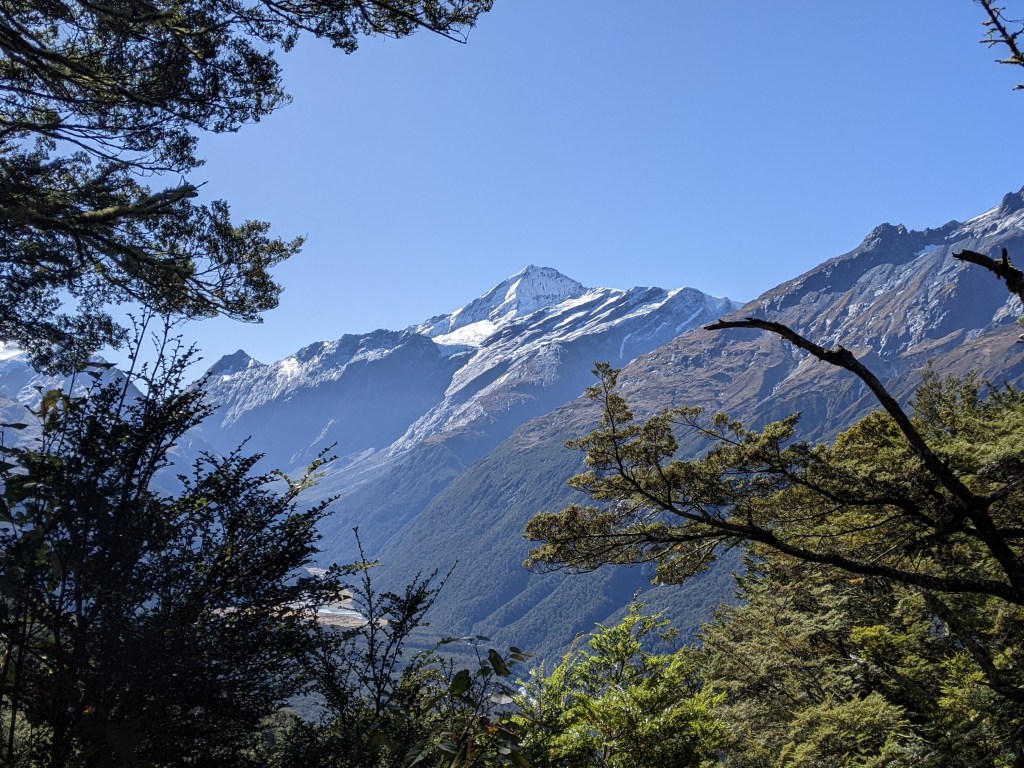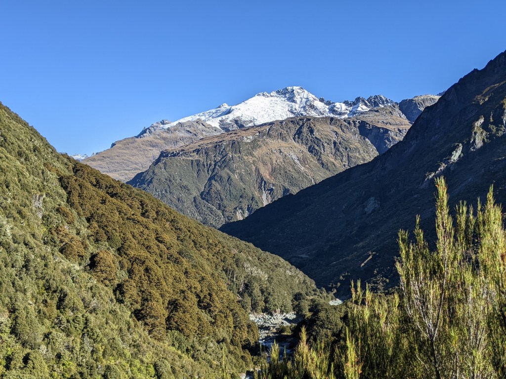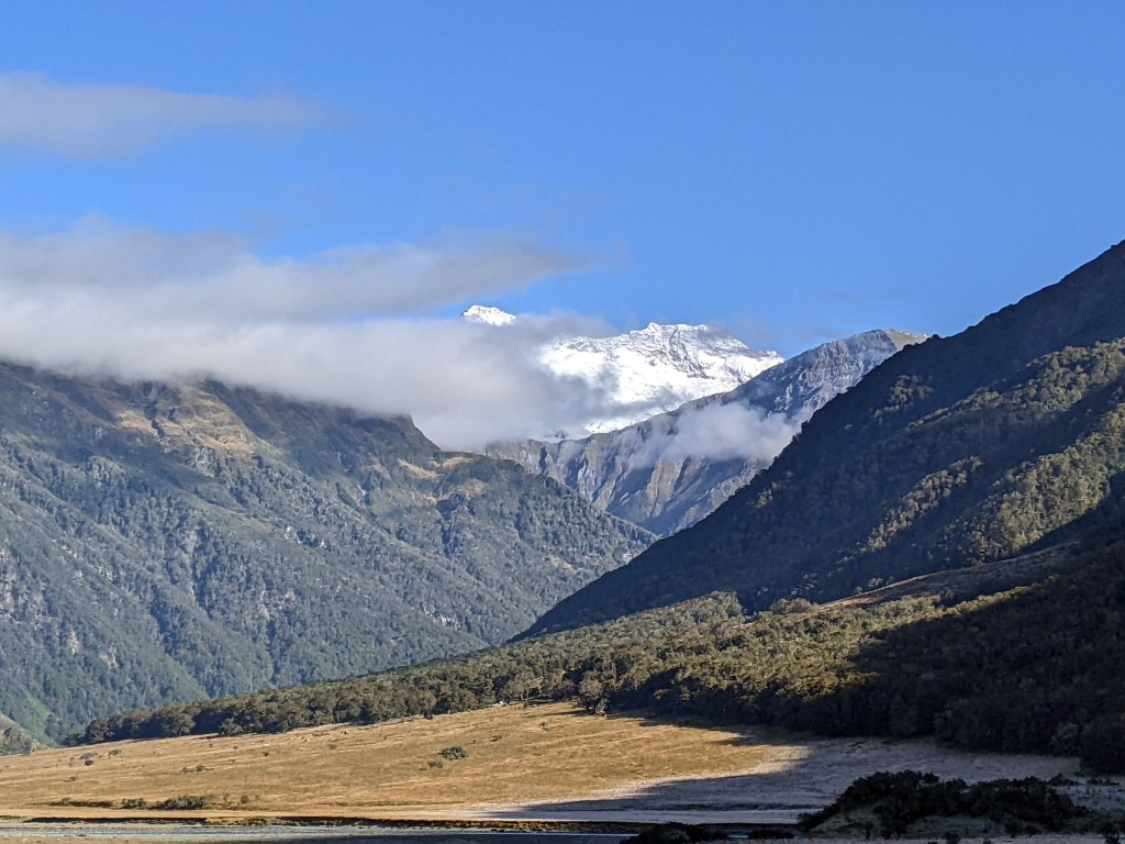 I got up to the Raspberry creek car park a little later than I’d hoped and set off around 9:30 down the track. The first section followed the Matukituki river and had lovely views of the surrounding peaks.