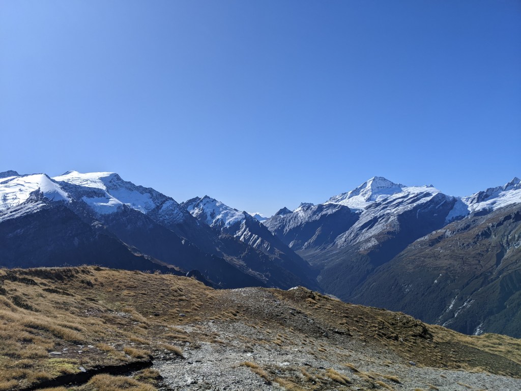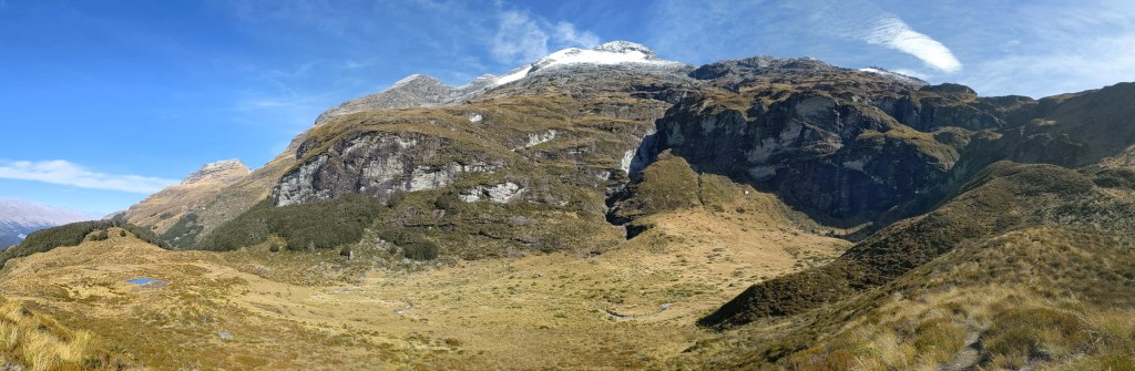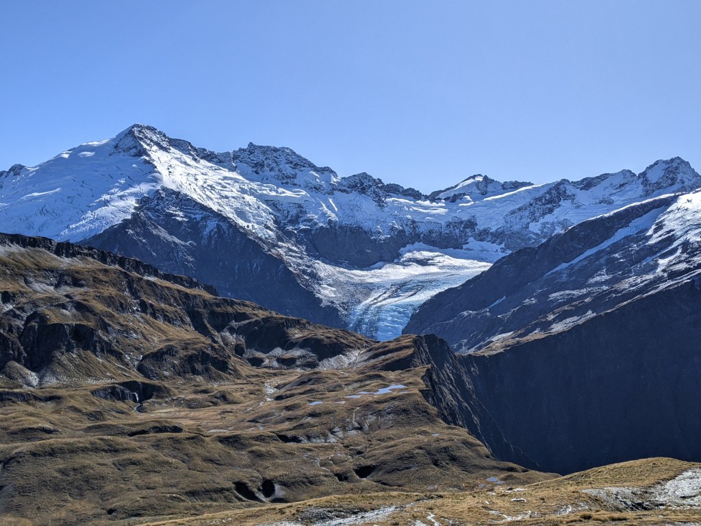After the climb, the trail meanders through some alpine terrain before getting to the actual saddle. From the saddle, there are amazing views of the Dart Glacier.