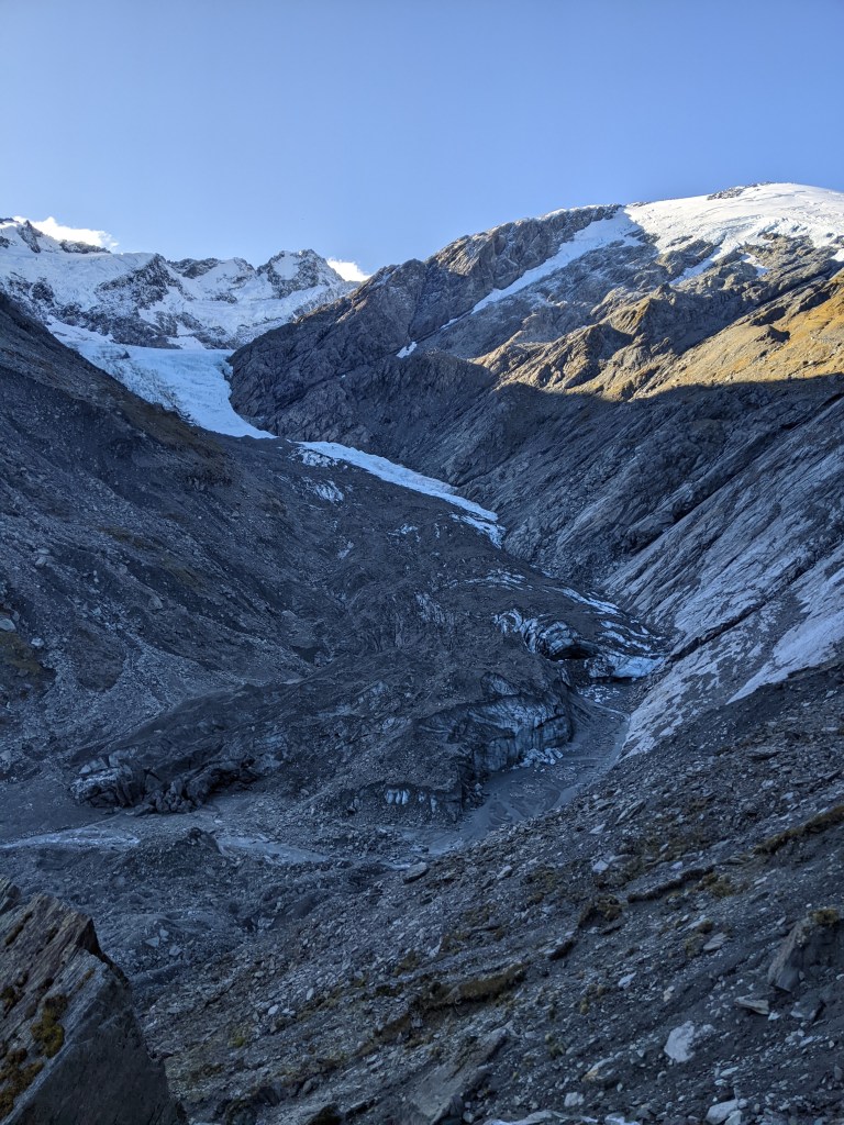 Along this section, I finally caught up with Caroline and we did the last bit to the hut together while catching up. We got to the hut just after 6pm as it was just starting to get dark, perfect timing. The Dart hut is quite comfortable with a stove, large common area and four sleeping rooms with 8 bunks in each. It even had toilets with flushing water and TP. Today’s hike truly was special and unique, one of my favorite days of hiking overall. It was tough, but it was really cool and interesting to see a glacier from closer up and to see so many glaciers, which isn’t something TA offers. It didn’t hurt that it was a gorgeous sunny day and that conditions were ideal.