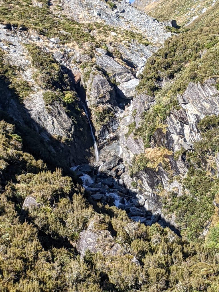 It didn’t take very long to come to the park boundary and to emerge into more flats alongside the river. We decided to do a side trail up to Kea basin and so forded the river to find the track. It was a good climb but with switch backs so much more reasonable than most. There were some great views of the river valley along the way.