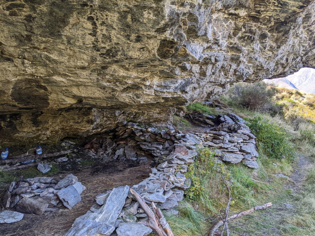 We got to the basin, where there’s a bivy under a rock overhang. We stopped for a long lunch break but decided not to spend the night.