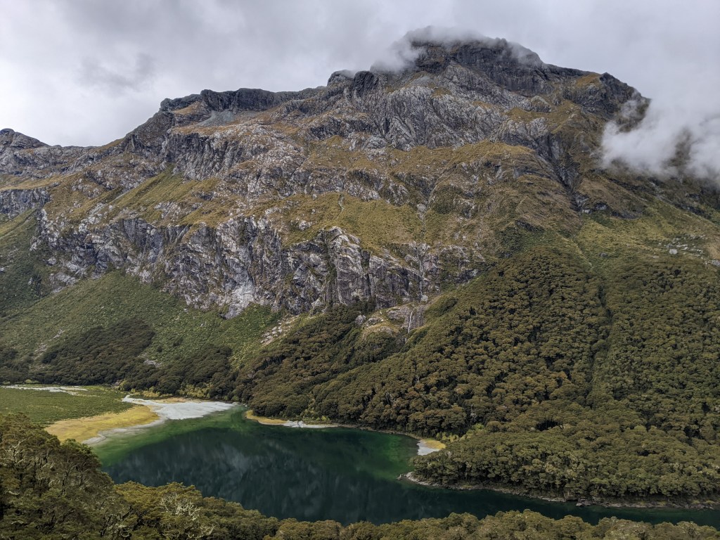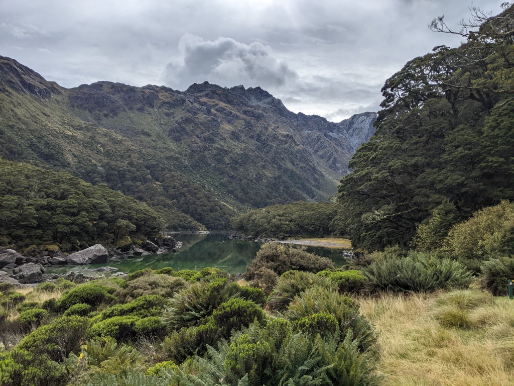 Shortly after the view opened up to more views of the Darrans the other side of the Hollyford valley before going down to Lake Mackenzie, where there’s a hut and a campsite on the lake.