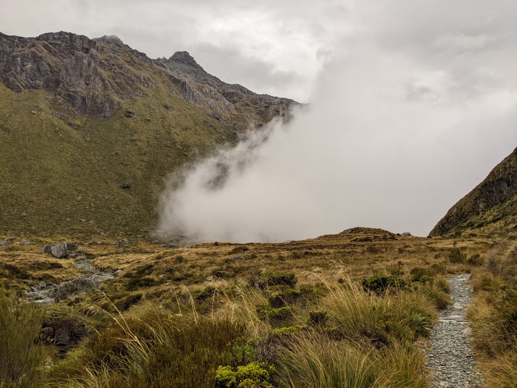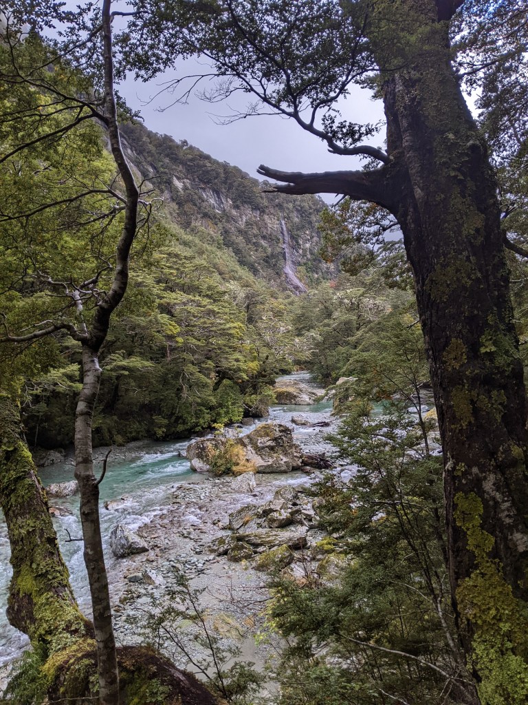 It did look decidedly more overcast and a light rain started not too long after passing by the lake. The Route burn pours out of Lake Harris and the trail follows it’s namesake to the Routeburn falls.