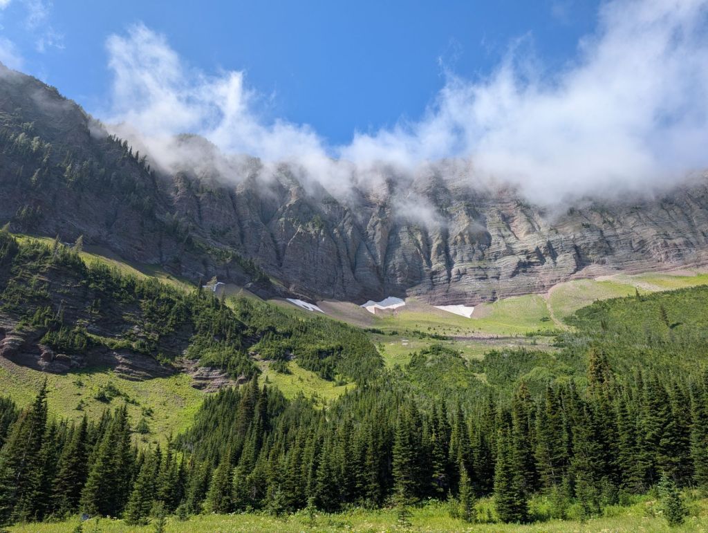 It was a pretty road walk and at least there was a lot less traffic than yesterday. I made good time to the trailhead and set off up the trail. It was very similar to yesterday, following a creek leading up and up the valley. It ended in this massive bowl and I had no clue how on earth the trail would climb up the sides of it, but it did.