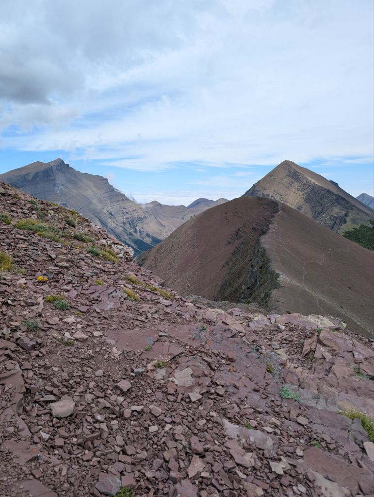 The skies had cleared a lot at this point and it was hot going. I felt like I was crawling along to keep my breathing from getting to hard. I’m not sure if it’s the altitude since I got up over 2500m today or just climbing with a heavy pack or both. Finally at the summit, it was windy and clouded over again so it was quite chilly. I put some layers on and had lunch enjoying the views.