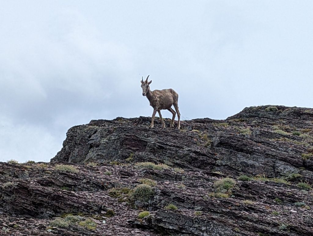 I didn’t linger too long though and as I started down, I met a couple coming up. They pointed out a goat was following me and we turned to watch it and then 2 others come down next to the trail. They seemed quite unafraid but did run past where we stood.