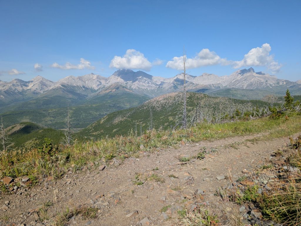 I had my earliest start yet, at 7:45. I was awake but it still took some mental convincing to get out of my warm sleeping bag into the surprisingly cold air. The tent was soaked with condensation again and my attempts to dry it with no sun nor breeze were futile. As I set off, I enjoyed that there were no cars on the road yet so I didn’t get any dust clouds and was soon off the road anyways and heading up an ATV track. It was a good climb, but it was still cool out despite the sun now hitting the trail and felt a lot more manageable than some of the climbs. Until out of the blue I felt a searing pain in the front of my left ankle. Each step hurt a lot although landing on the ball of my foot seemed to be somewhat less painful. At the top, I took a break to adjust my shoe and put some Voltaren on it. I didn’t stop long as I was swarmed by these little black flies that didn’t seem to bite but were all up in my face and just driving me crazy. The terrain flattened out along the top, which seemed to help the pain a bit too. It was deforested and the views to the west of the Continental divide across the valley were stunning.
