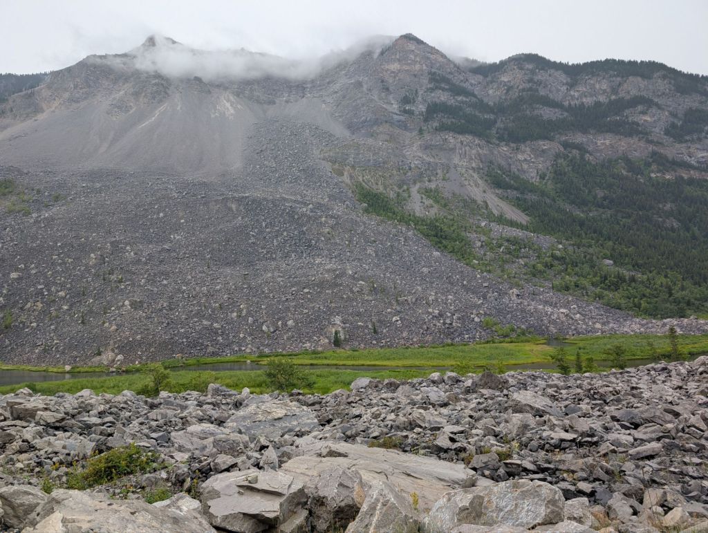 I then had a lazy rainy day after delicious eggs Benedict for breakfast. I did get driven by Ken into Blairmore for my chores and then to see this massive slide that happened nearby. It dates to over 100 years ago but it is still extremely impressive to see the massive rocks all around the bottom and how far they spread. It sounds like it was pretty tragic because there was a settlement that got wiped out by it.