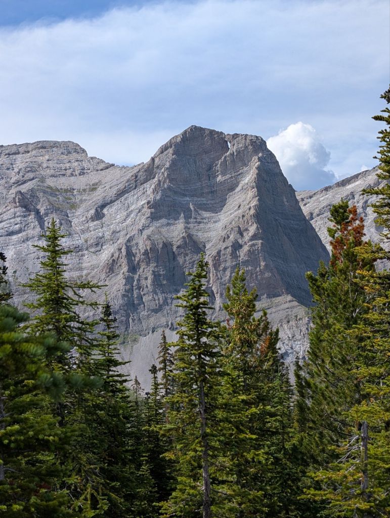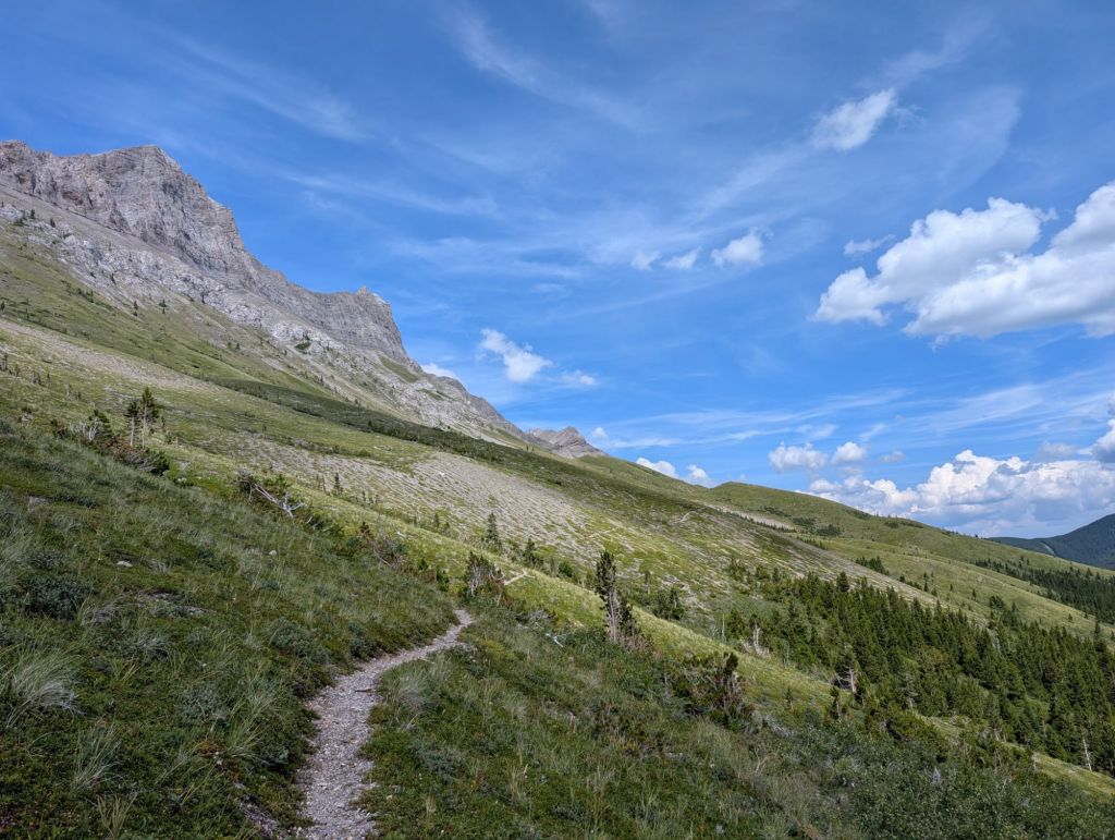 The trail went up slowly alternating between forest and meadows. In the meadows, I had views of Crowsnest Mountain and some peaks along the divide on the other side.