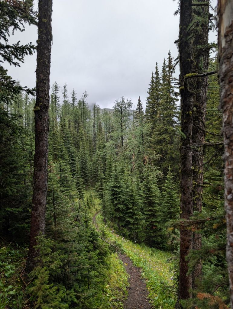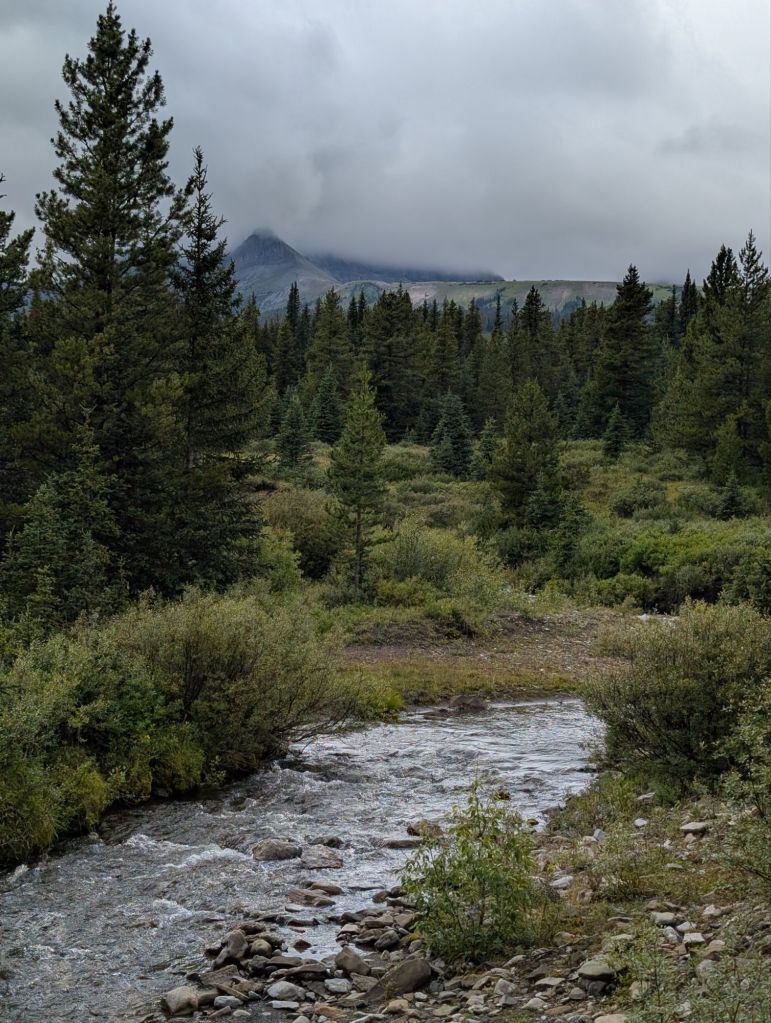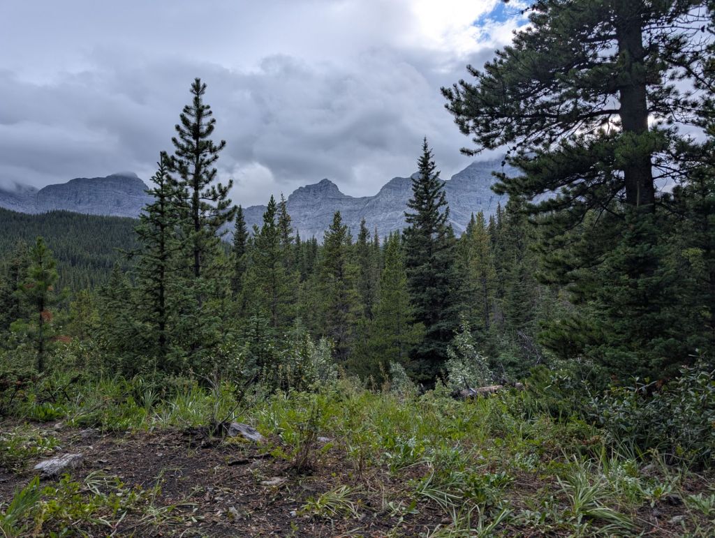 It eventually came out into a bit of opening and I could see back to Beehive with its head in the clouds. And there were some new mountains, also with their heads in the clouds.
