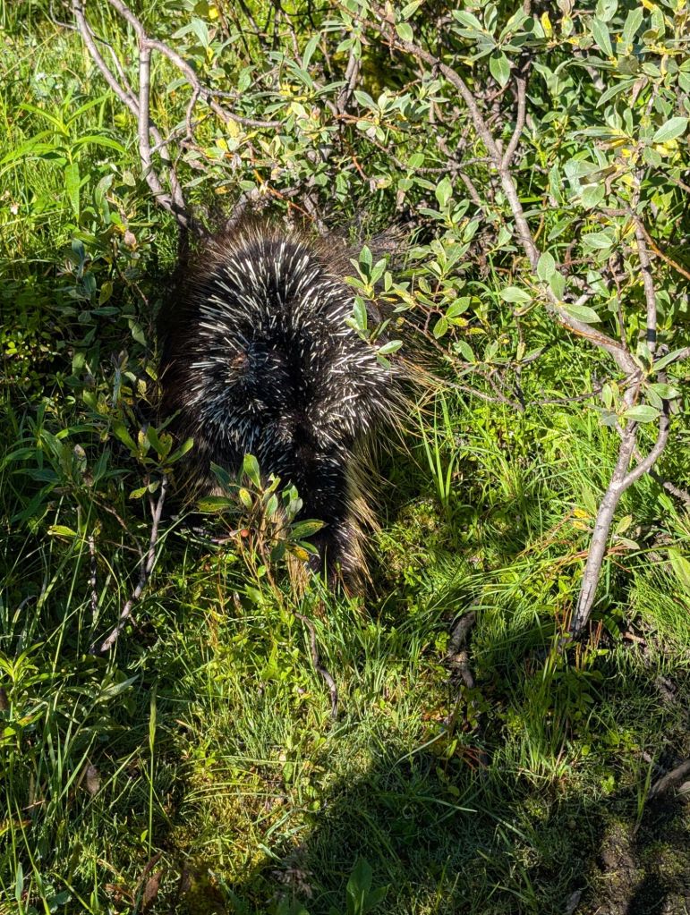 After a pass, it was a gradual downhill past more alpine lakes. Just past Aster lake and the next campground, I passed a porcupine. It was in a defensive position with it’s back (and quills) to me so I never saw it’s face.