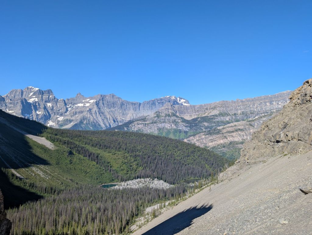 After continuing, there was a steeper descent traversing a scree slope with epic views, too bad I had to be careful and look at my feet so much.